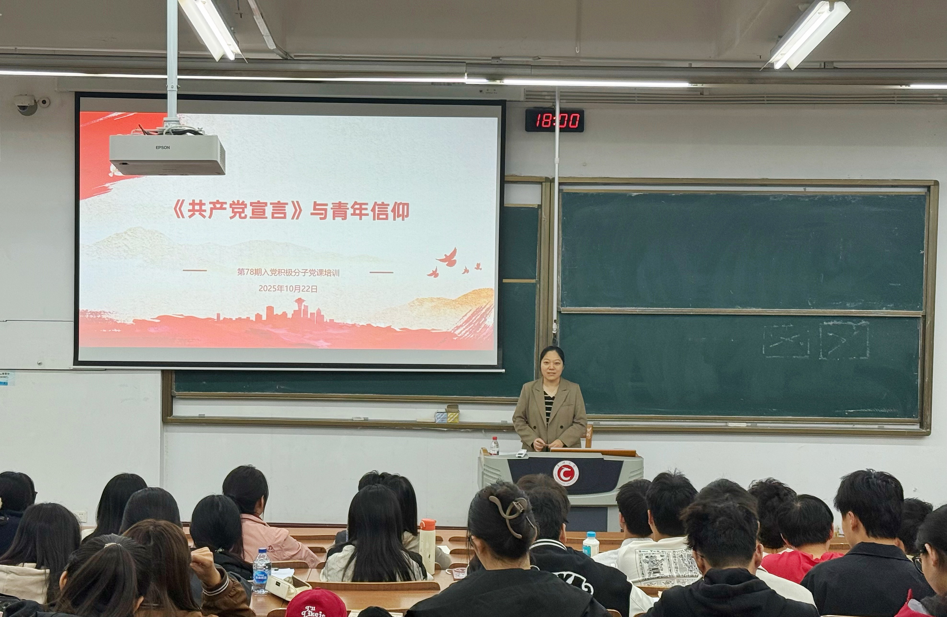 为加强入党积极分子的理论武装与理想信念教育,10月22日晚,学院党总支书记宣慧为第78期入党积极分子培训班学员讲授“《共产党宣言》与青年信仰”主题党课。华罗庚学院、机器人产业学院、药学院和医工学院入党积极分子参加培训。