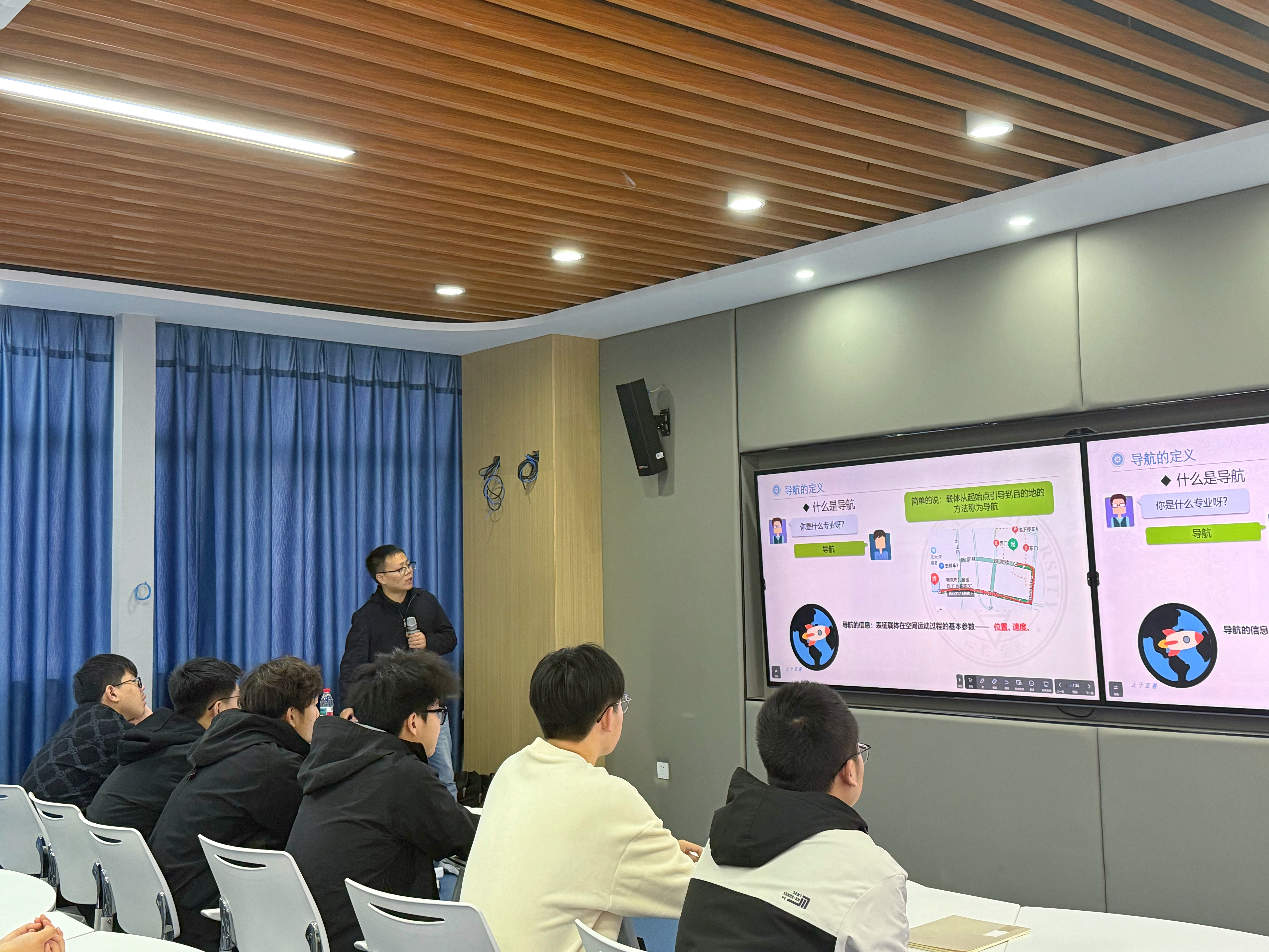 夏茂栋围绕“基础知识”“水下导航”和“试验平台”三大模块,系统讲解了导航技术的核心原理与实际应用。他结合自身研究经历,通过生动案例与专业解读,带领大家领略导航技术从星空定位到深海探测的科技发展历程。同学们就专业学习与团队协作等话题与夏老师展开探讨,夏老师结合自身实践经验给予一一且细致的回应,并鼓励大家夯实专业基础,勇于探索,在未来的科研道路上不断突破。