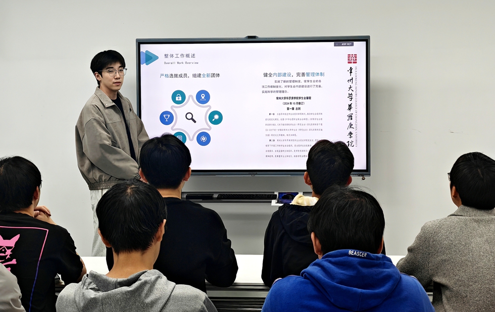 大会在庄严的国歌声中拉开序幕。院学生会主席陈鹏作了题为《以华罗庚精神为炬,照青春奋进之路》的工作报告,系统回顾了过去一年院学生会聚焦内部建设、完善管理体制的实践探索,重点围绕“丰富校园生活、传递青春能量、传承精神文化、助力学生成长”四大方向,汇报了在文体活动、志愿服务、红色文化宣传、学习交流等方面的扎实成效。同时也客观反思了当前工作存在的不足,并明确了下一阶段畅通反馈机制、创新活动形式、加强部门协同等改进方向,为后续工作指明方向。