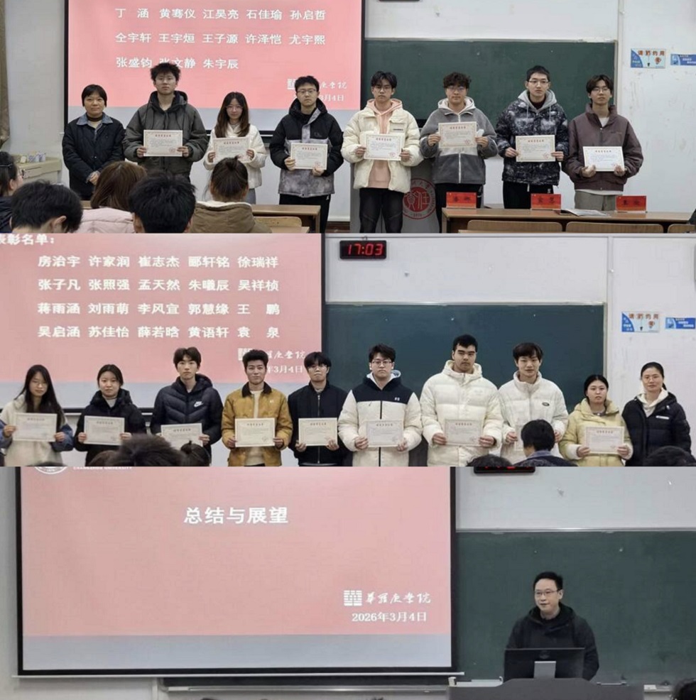 3月4日下午,我院于W1103举行2026年科创训练营表彰大会。学院党总支书记宣慧、院长潘娜、副院长王欢出席本次活动,华院242、华院25级全体同学参与。本次大会旨在表彰训练营期间表现优异的同学,分享成长经验,总结活动成果。