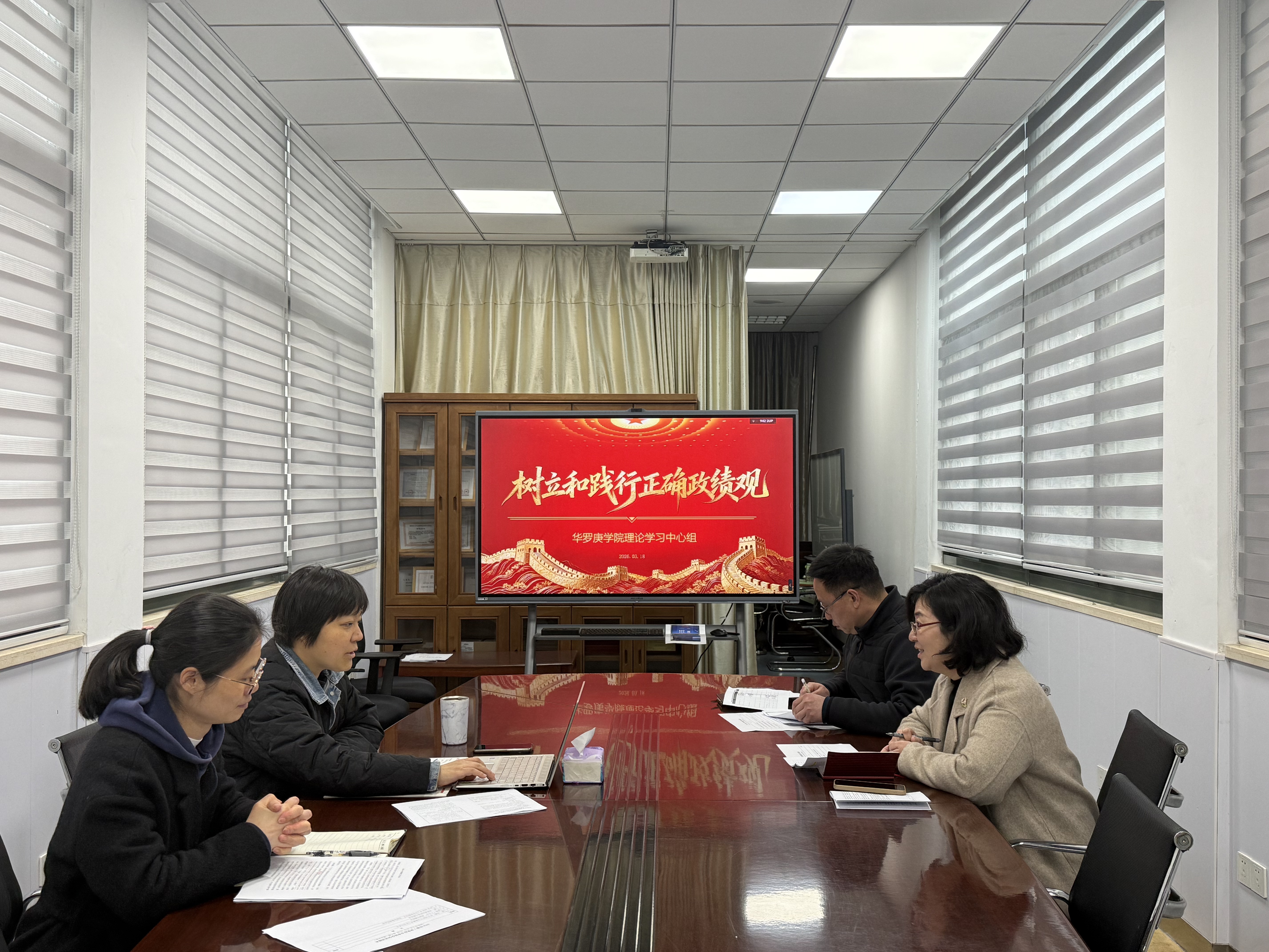 3月18日,华罗庚学院党总支开展树立和践行正确政绩观学习教育读书班暨党总支理论学习中心组(扩大)学习,专题学习《习近平关于树立和践行正确政绩观论述摘编》第一部分内容,党总支书记宣慧主持并领学。