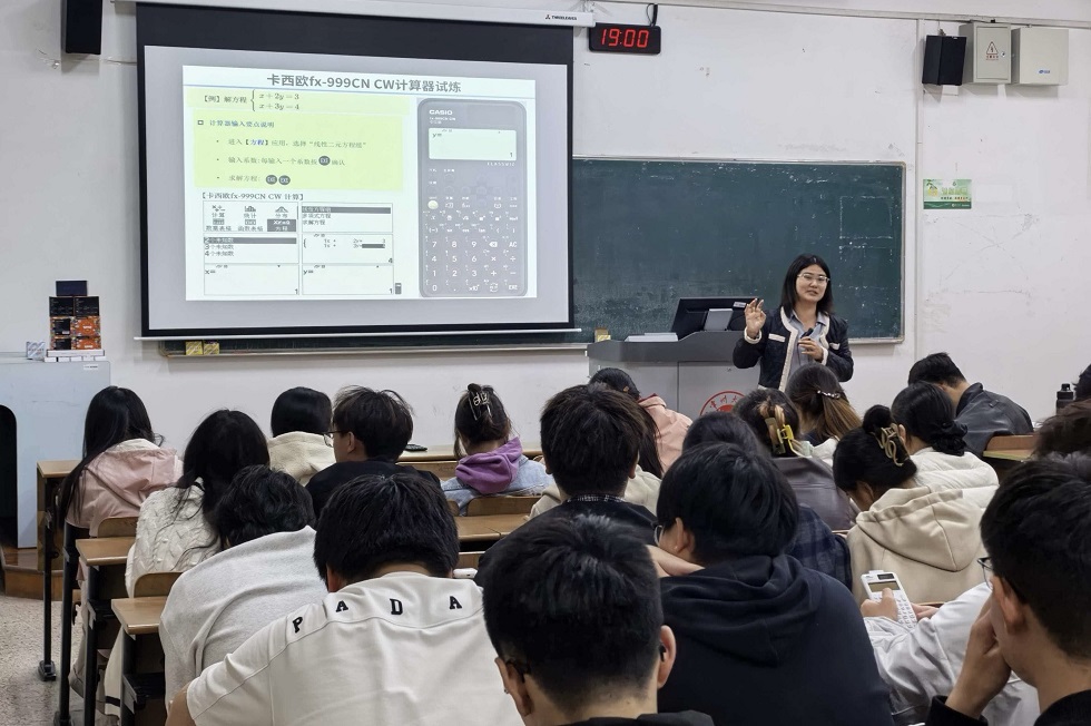 本次比赛以“限时竞速、精准运算”为核心,聚焦学习中常用的数理计算、工程运算等内容,设置8分钟限时答题环节,全面考察选手对计算器函数、公式存储、方程求解等功能的熟练程度,也考验其在限时压力下的逻辑思维与心理素质。比赛现场气氛紧张而热烈,参赛选手们凝神专注,指尖在计算器上快速敲击,争分夺秒完成每一道试题,与计算器按键的清脆声响交织,勾勒出一幅青春向学、竞逐争先的动人画面。比赛结束后,现场实时公布获奖名单,老师依次为获奖学生颁发奖品。