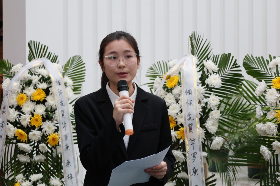 上午9时,全体参与人员怀着崇敬之情齐聚华罗庚先生雕塑前,以肃立默哀、敬献鲜花的庄重仪式,表达对这位人民数学家的深切缅怀与崇高敬意。随后,来自不同单位的三位代表依次发言,深情追忆华罗庚先生矢志报国、献身科学的光辉事迹。其中,我院的张澜同学在发言中回顾了华罗庚先生从金坛走向世界数学巅峰的奋斗历程,分享了先生“精勤不倦、自强不息”的精神品格。作为华院学子,她表示将传承先生精神,刻苦钻研,立志成才,报效祖国。